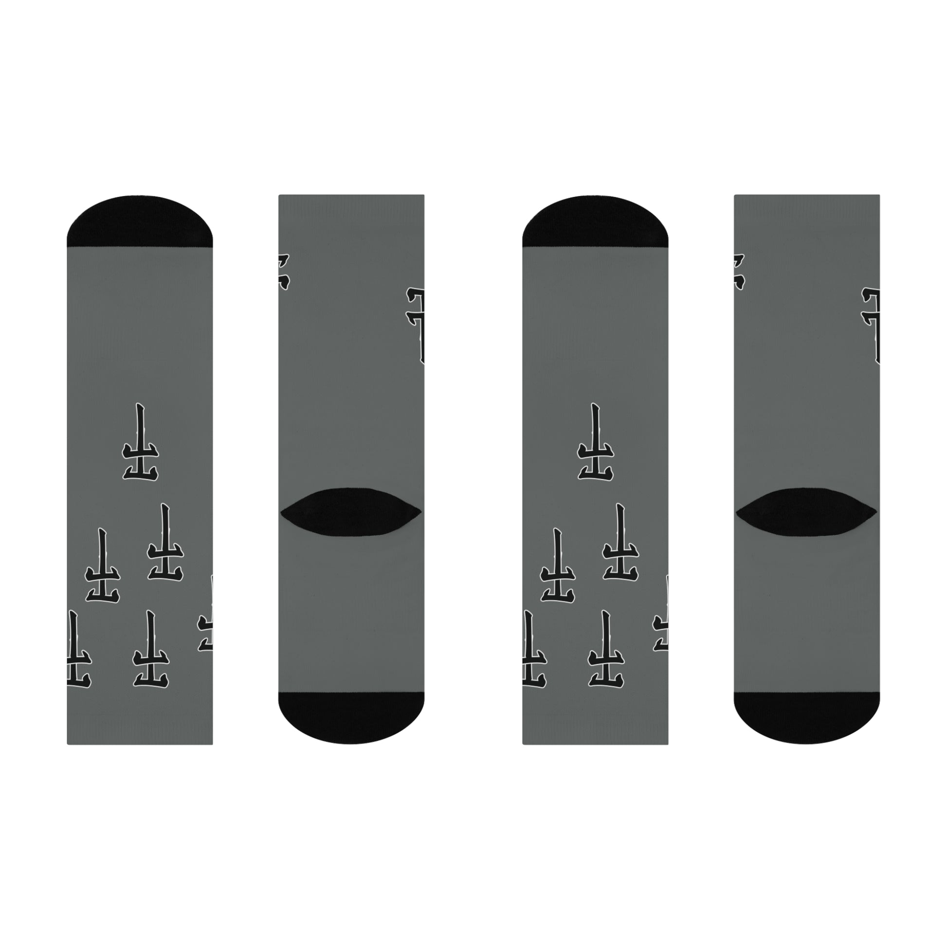 TrenchStepper Crew Socks — Grey Athletic Socks with Repeating Double 'T' Logo